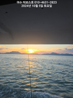 ???? 빅보스 문어 다녀왔습니다 ????오전에 힘든상황을 극복하고...오후 마지막 포인트에서 덩치급들이 우당탕 하네요늦은 시간까지 고생하셨습니다끝날때까지 끝나게 아닙니다 철수길에 한컷 ...역쉬 석양은 이뿌네요빅보스호 황명희선장 010-4631-2823 ===== 여수 빅보스호 예약안내 ====== 안녕하세요! 여수 빅보스호입니다.먼길 찾아주시는 조사님들 항상 감사드리며 매 순간 진심을 다하는 빅보스호가 되겠습니다. ■ 예약문의 : 010-4631-2823■ 오시는길 : 전남 여수시 하멜로 64-1■ 여수 빅보스호 실시간 예약 바로가기 : http://big.sunsang24.com/■ 여수 빅보스호 밴드 바로가기 : https://band.us/@bigboss1980 ■ 여수 빅보스호 블로그 바로가기 : http://blog.naver.com./heamosu-ys ■ 선비 안내 : 생활낚시:8만 , 평일/주말 동일 (롱타임 :11만) 타이라바 15만(지렁이포함) , 심해갑오징어(15만)■ 계좌안내 : 신한은행 / 110-392-257772 / 주윤미■ 선사제공 : 개인도시락,생수,커피,라면,간식■ 출항 : 어종/시즌마다 다름 (출항 30분 전까지 승선부탁드립니다)■ 입항 :15시 이후/ 롱타임 17시 이후 (생활낚시 기준)■ 자리배정은 추첨식■ 1번 뽑으신 분부터 원하는 자리 선택 가능■ 우선배정은 이틀자,4인 이상 단체(단체 일렬배정)■ 예약금은 입금 완료하셔야 예약확정됩니다.■ 출항일 기준- 3일전 100% 환불 , 2일전 50%환불 , 1일전 환불 불가■ 기상에 따라 출항일정이 변경 될 수 있는 점 양해바랍니다.