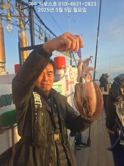 ????빅보스 쭈꾸미 다녀왔습니다 ????사이즈 굿마릿수 굿오늘 고향집 방문하여 체험낚시 하신 14분 조사님 들과함께 하였습니다낚시에 있어서 즐거운면 됐죠 거기에 덤으로 왕쭈꾸까지 ....거쎈 바람에도 즐겁게 낚시하셨네요장원 80여개로 마무리 하였습니다내일 문어 출항합니다02시30분 출항10시00분 입항빅보스호 황명희선장 010-4631-2823 ===== 여수 빅보스호 예약안내 ====== 안녕하세요! 여수 빅보스호입니다.먼길 찾아주시는 조사님들 항상 감사드리며 매 순간 진심을 다하는 빅보스호가 되겠습니다. ■ 예약문의 : 010-4631-2823■ 오시는길 : 전남 여수시 하멜로 64-1■ 여수 빅보스호 실시간 예약 바로가기 : http://big.sunsang24.com/■ 여수 빅보스호 밴드 바로가기 : https://band.us/@bigboss1980 ■ 여수 빅보스호 블로그 바로가기 : http://blog.naver.com./heamosu-ys ■ 선비 안내 : 생활낚시:8만 , 평일/주말 동일 (롱타임 :11만) 타이라바 15만(지렁이포함) , 심해갑오징어(15만)■ 계좌안내 : 신한은행 / 110-392-257772 / 주윤미■ 선사제공 : 개인도시락,생수,커피,라면,간식■ 출항 : 어종/시즌마다 다름 (출항 30분 전까지 승선부탁드립니다)■ 입항 :15시 이후/ 롱타임 17시 이후 (생활낚시 기준)■ 자리배정은 추첨식■ 1번 뽑으신 분부터 원하는 자리 선택 가능■ 우선배정은 이틀자,4인 이상 단체(단체 일렬배정)■ 예약금은 입금 완료하셔야 예약확정됩니다.■ 출항일 기준- 3일전 100% 환불 , 2일전 50%환불 , 1일전 환불 불가■ 기상에 따라 출항일정이 변경 될 수 있는 점 양해바랍니다.